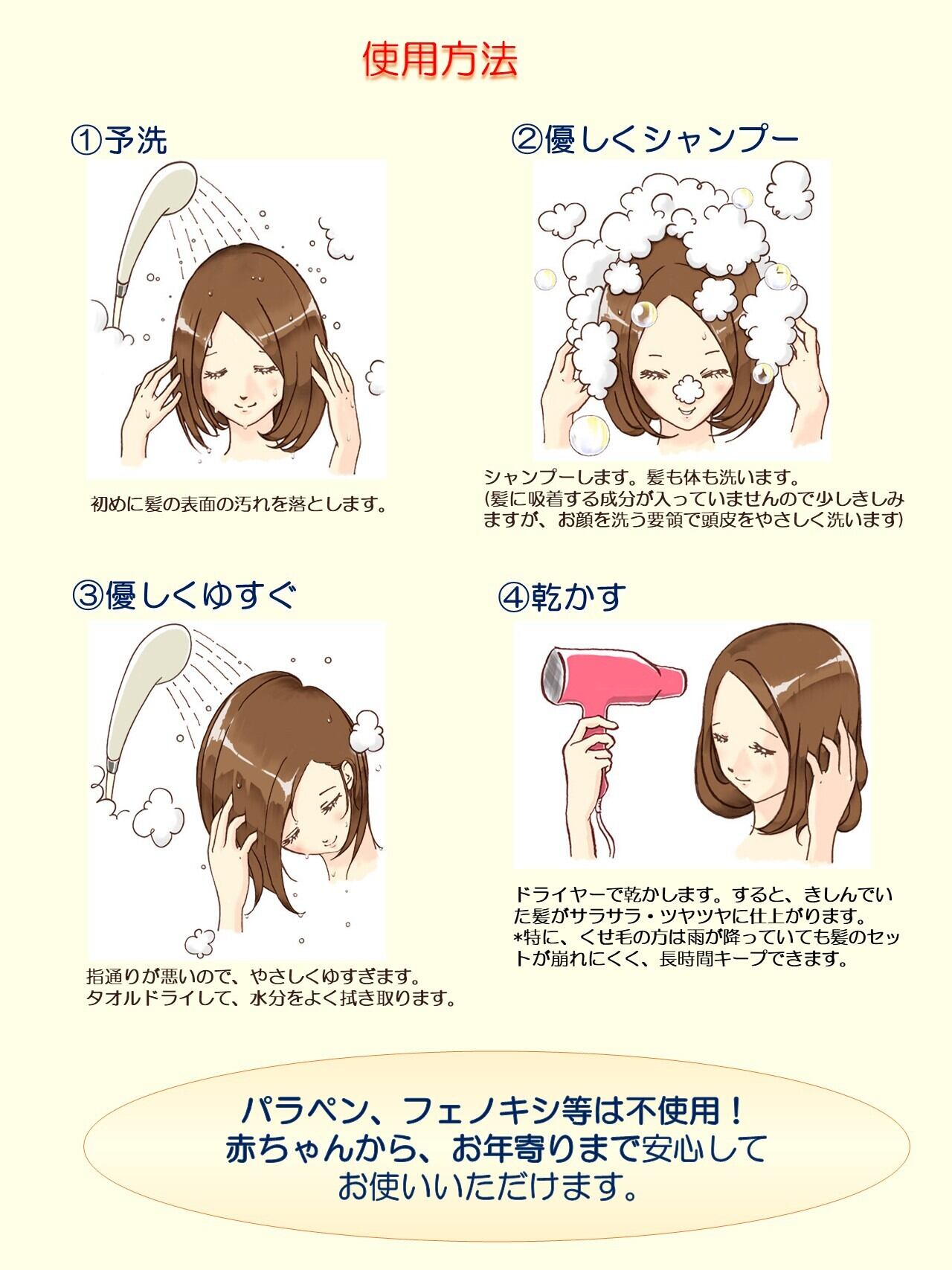 ポリクオタニウム10(植物繊維由来の高分子セルロース水溶性のポリマー)という成分を少量配合することにより、毛髪の表面に保護膜を作り保水性、保護効果を出しています。これにより毛髪の“きしみ”がなくなります。